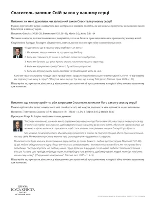 Щоб допомогти студентам підготувати відповідь, ви можете надати кожному студенту копію роздаткового матеріалу “Спаситель запише Свій закон у вашому серці”.