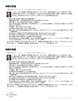 配付資料「神殿の祝福」を読み,印象に残った祝福に下線を引くか,丸を付けましょう。
