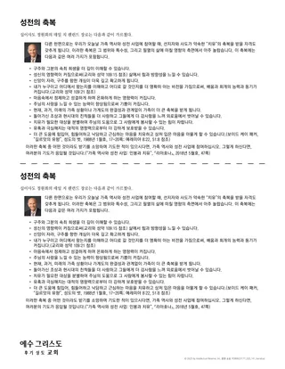 유인물 “성전의 축복”을 읽고 인상 깊은 축복에 밑줄을 긋거나 동그라미를 친다.
