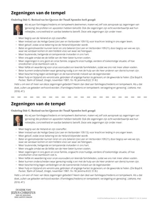Lees de hand-out ‘De zegeningen van de tempel’ en onderstreep of omcirkel de zegeningen die er voor jou uitspringen.