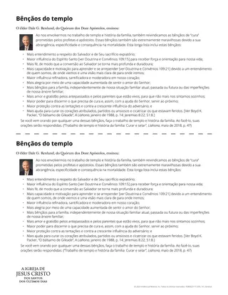 Leia o material complementar “As bênçãos do templo” e sublinhe ou circule todas as bênçãos que se destacam para você.
