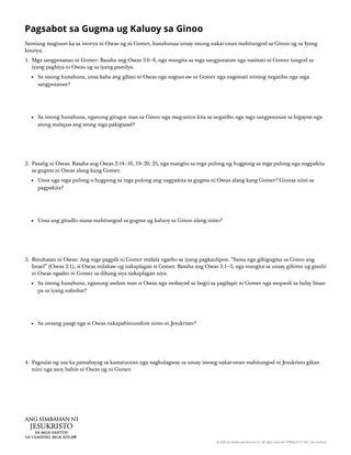 Aron tabangan ang mga estudyante nga masabtan ang istorya ni Oseas ug Gomer, ipakita o i-summarize ang mosunod nga parapo.