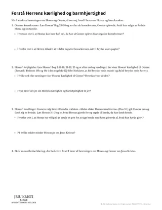 For at hjælpe eleverne til at forstå Herrens kærlighed og barmhjertighed over for dem kan I bruge uddelingsarket »Forstå Herrens kærlighed og barmhjertighed«. I kan lade eleverne arbejde på egen hånd for at fremme stille, bønsom overvejelse. De kan også arbejde i grupper med en gruppeleder, der har til opgave at lede deres drøftelse. Gå rundt i lokalet, mens eleverne arbejder, og besvar deres spørgsmål efter behov.
