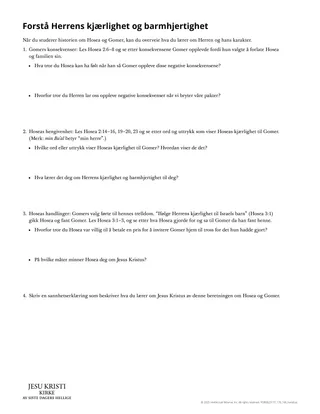 I Hoseas bok brukte Herren ekteskapet mellom Hosea og Gomer som et symbol for å undervise Israel om sin urokkelige paktskjærlighet. I likhet med Israel, kan vi til tider komme bort fra Herren og våre pakter med ham. Likevel forblir Jesus Kristus trofast og elsker oss. Denne leksjonen kan hjelpe elevene til å forstå Herrens urokkelige kjærlighet til og barmhjertighet for dem.