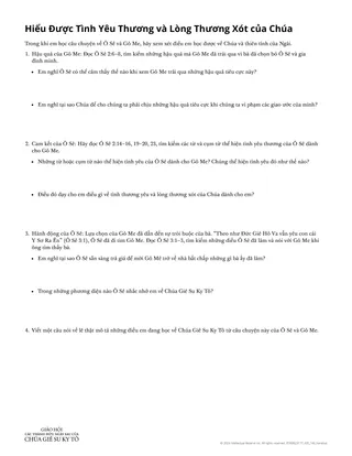 Để giúp học viên hiểu tình yêu thương và lòng thương xót của Chúa dành cho các em, anh chị em có thể sử dụng tài liệu phát tay “Hiểu Tình Yêu Thương và Lòng Thương Xót của Chúa”. Học viên có thể làm việc này một mình để có thêm cơ hội thành tâm suy ngẫm trong yên tĩnh, hoặc các em có thể làm việc theo nhóm với một trưởng nhóm được chỉ định để dẫn dắt cuộc thảo luận của các em. Trong khi học viên làm việc, hãy đi quanh phòng và trả lời câu hỏi của các em nếu cần thiết.