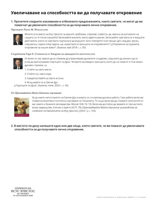 За да помогнете на учениците да се научат как да „върш(ат) духовната работа“, необходима за получаване на лично откровение, бихте могли да дадете на всеки екземпляр от материала за раздаване „Увеличаване на способността ви да получавате откровение“.