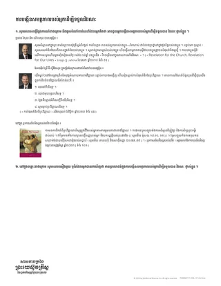 បងប្អូនប្រុសស្រីជាទីស្រឡាញ់របស់ខ្ញុំអើយ ខ្ញុំសូមអង្វរបងប្អូនឲ្យបង្កើនសមត្ថភាពខាងវិញ្ញាណរបស់បងប្អូនដើម្បីទទួលបានវិវរណៈ ។ … សូមជ្រើសធ្វើកិច្ចការខាងវិញ្ញាណដែលបានតម្រូវឲ្យធ្វើ ដើម្បីរីករាយនឹងអំណោយទាននៃព្រះវិញ្ញាណបរិសុទ្ធ ហើយស្ដាប់ឮព្រះសូរសៀងនៃព្រះវិញ្ញាណឲ្យបានញឹកញាប់ ហើយកាន់តែច្បាស់ » ។ Revelation for the Church, Revelation for Our Lives » Liahona ខែឧសភា ឆ្នាំ២០១៨ ទំព័រ ៩៦ )