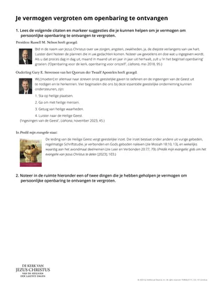 Om de cursisten te leren ‘het geestelijk werk te verzetten’ dat nodig is om persoonlijke openbaring te ontvangen, kunt u ze allemaal een exemplaar van de hand-out ‘Je vermogen vergroten om openbaring te ontvangen’ geven.