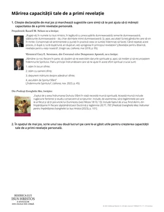 Pentru a ajuta cursanții să învețe cum să „[facă] munca spirituală” necesară pentru a primi revelație personală, le puteți da fiecăruia câte un exemplar al foii de prezentare „A-ți mări capacitatea de a primi revelație”.