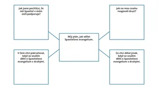 Po uplynutí dostatečné doby požádejte dobrovolníky, aby se o své zkušenosti podělili s ostatními členy třídy. Vyhledávejte způsoby, jak studenty chválit a povzbuzovat v jejich úsilí dělit se o Spasitelovo evangelium. Mohli byste studentům poskytnout příležitost, aby si s modlitbou vytvořili nový plán, jak se budou i nadále dělit o evangelium Ježíše Krista s lidmi kolem sebe.