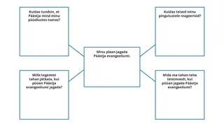 Võiksite kuvada järgmise joonise. Paluge õpilastel teha sarnane joonis oma pühakirjapäevikusse ja vastata ühele või mitmele kastides olevale küsimusele.