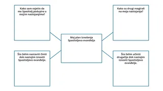 Razmotrite prikazati sljedeći grafički prikaz. Pozovite polaznike da naprave sličnu grafiku u svojem dnevniku proučavanja i ispune kućicu za jedan ili više poticaja.