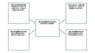 以下の図を掲示してください。生徒に,学習帳に同じような図を描いてもらい,四角の中に促しを1つ以上記入してもらいましょう。