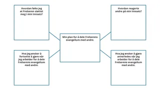 Etter tilstrekkelig tid, ber du noen elever om å drøfte erfaringene sine med klassen. Se etter måter å rose og oppmuntre elevene på i deres innsats for å dele Frelserens evangelium med andre. Du kan gi elevene anledning til å legge en ny plan med bønnens hjelp, for å fortsette å dele Jesu Kristi evangelium med menneskene rundt seg.