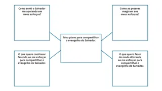 Depois de um tempo suficiente, convide os alunos interessados a debater suas experiências com a turma. Procure maneiras de elogiar e incentivar os alunos em seus esforços para compartilhar o evangelho do Salvador. Você pode dar aos alunos a oportunidade de, em espírito de oração, fazer um novo plano para continuar a compartilhar o evangelho de Jesus Cristo com as pessoas ao seu redor.