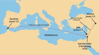 I kan også forklare, at Tarshish kan være i nutidens Spanien, hvilket indikerer, at Jonas forlod Israel og rejste i den modsatte retning af Nineve. I kan eventuelt vise eleverne et kort og lade dem finde Nineve og Tarshish.