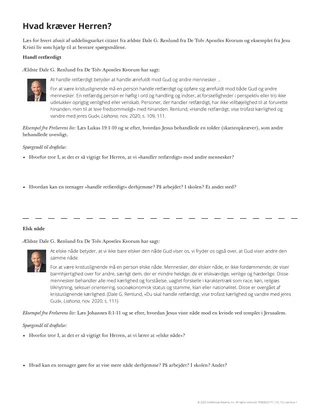 I dag kan Helligånden have inspireret til en tanke i jeres sind eller en følelse i jeres hjerte om noget, der kan hjælpe jer til at handle retfærdigt, elske barmhjertighed eller vandre ydmygt med Herren. Lav en plan for at handle på det, I har lært og følt ved at færdiggøre følgende spørgsmål i jeres studiebog.