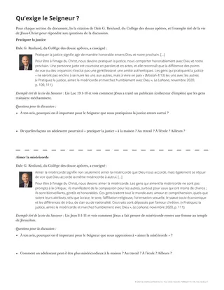 Pour les préparer à élaborer ce plan, utilisez le document « Qu’exige le Seigneur ? »