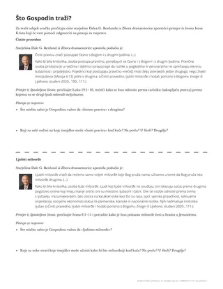 Nakon što polaznici iznesu, možete istaknuti da je, kada prepoznamo velike stvari koje je Gospodin učinio za nas, prirodno upitati se kako mu možemo služiti i ugoditi mu. Objasnite da se prorok Mihej hrvao s pitanjem što možemo učiniti kako bismo ugodili Gospodinu.