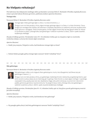 Kad mokiniai pasiruoštų sudaryti šį planą, galite naudoti dalijamąją medžiagą „Ko Viešpats reikalauja?“