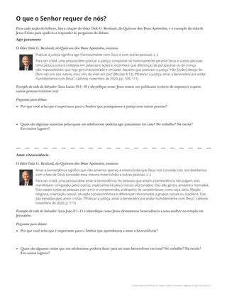 Os alunos podem usar suas próprias palavras para transmitir a seguinte verdade: O Senhor Se agrada quando nos esforçamos para praticar a justiça, amar a misericórdia e andar humildemente com Ele.