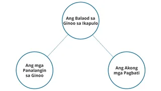 Ang mosunod nga graphic makatabang sa mga estudyante nga maghunahuna sa lohikal nga paagi sa tibuok leksiyon. Dapita ang mga estudyante sa pagdrowing sa graphic, o butang nga susama, diha sa blangko nga panid sa ilang mga journal sa pagtuon. Pwede usab kang magdrowing og susama diha sa pisara.