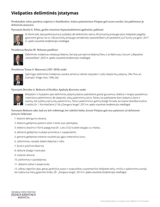 Pateikta dalijamoji medžiaga „Viešpaties dešimtinės įstatymas“ gali padėti mokiniams geriau suprasti palaiminimus, kuriuos Viešpats suteikia mums, kai laikomės Jo įstatymo. Galite suskirstyti mokinius į mažas grupes ir kiekvienai grupei duoti po dalijamosios medžiagos kopiją. Mokiniai gali pakaitomis garsiai perskaityti citatas. Perskaitę kiekvieną citatą, mokiniai prie savo schemos studijavimo žurnaluose gali pridėti daugiau palaiminimų.