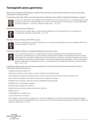 О том, что вы узнали или почувствовали сегодня, что укрепило ваше желание платить десятину. Это могут быть обещанные благословения от Господа, которые вы хотите получить.