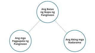 Ang sumusunod na graphic ay makatutulong sa mga estudyante na isaayos ang mga naiisip o mga ideya nila sa lesson na ito. Anyayahan ang mga estudyante na idrowing ang graphic, o ang katulad nito, sa isang blangkong pahina sa kanilang study journal. Maaari ka ring magdrowing ng katulad nito sa pisara.