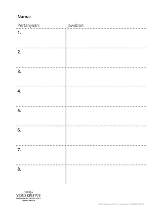 Tempatkan di papan tulis beberapa pertanyaan untuk siswa jawab atau ayat-ayat yang mengenainya mereka dapat berbagi wawasan. Setiap siswa menuliskan nama mereka pada catatan tempel dan menempatkannya di samping pertanyaan atau ayat-ayat yang bersedia mereka jawab atau komentari.