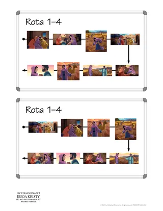 Mampisehoa sary maromaro izay maneho tantara iray ao amin’ny soratra masina mba hohalalinin’ny mpianatra. Asehoy ireo andininy hovakin’ny mpianatra. Asao ny ankizy handahatra ireo sary araka ny filaharany marina.