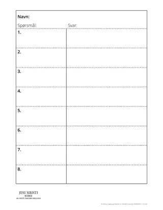 Når elevene har lest en skriftstedbolk, kan du be dem skrive ned spørsmål som versene kan bidra til å besvare. Utfordre elevene til å skrive meningsfylte, relevante spørsmål for en tenåring, istedenfor enkle søkespørsmål. Istedenfor å spørre: “Hva sier Alma at tro er? Hva sier han at tro ikke er?”, kan elevene for eksempel spørre: “Hva må jeg gjøre for å vite at noe Frelseren underviste, er sant?” Hvis elevene skal studere mer enn én skriftbolk, kan de skrive ned sine spørsmål og dele dem med en elev som studerte en annen bolk. Elevene kan se etter og tenke gjennom svarene på klassekameratenes spørsmål.