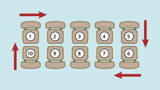 Faceți un cartonaș cu mai multe răspunsuri pe părți diferite (vedeți exemplul de mai jos). Când cursanții sunt invitați să răspundă, poziția lor este cea din mijloc sus. Apoi, dumneavoastră sau un cursant puteți apela la alți cursanți în funcție de poziția pe care o afișează.