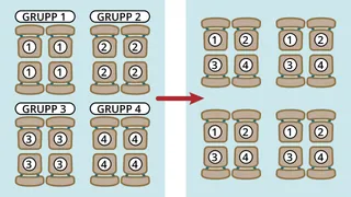 När eleverna studerar ett kapitel i skrifterna som innehåller flera sanningar som de kan tänkas hitta, kan du låta dem börja med att studera på egen hand. Eleverna kan var och en få avgöra vad de tror är de tre eller fyra viktigaste sanningarna eller principerna i blocket och skriva ner dem. Sedan kan du dela upp eleverna i par och jämföra sanningarna de identifierade. Varje elevpar avgör vad de känner är de två viktigaste sanningarna för dem och skriver ner dem. Obs: Principerna kan vara andra än deras ursprungliga fyra principer. Varje par går sedan samman med ett annat par för att bilda en grupp om fyra; tillsammans utbyter och jämför de fyra eleverna sina tankar och arbetar som ett team för att fastställa den allra viktigaste sanningen i texten för dem.