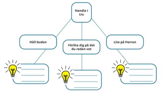 Eleverna kan ha nytta av att dela med sig av förslag på hur vi kan få hjälp att handla i tro när vi ställs inför bekymmer eller frågor om evangeliet. Ett sätt att göra det är att visa upp följande instruktioner.