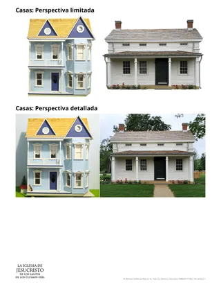 Considere invitar a los alumnos a pensar en una lección práctica o una analogía que pueda ilustrar el valor de ver las cosas desde una perspectiva diferente. Invítelos a compartir sus ideas con la clase; o bien, podría mostrar las imágenes que aparecen a continuación con el título “Hogares: Una perspectiva limitada”, e invitar a los alumnos a analizar las siguientes preguntas con un compañero: