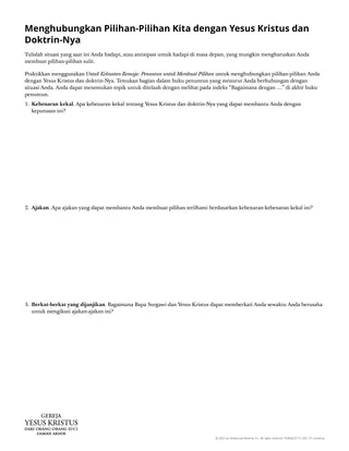 Dengarkan dorongan Roh sewaktu Anda berlatih menghubungkan pilihan-pilihan Anda kepada Yesus Kristus dengan bantuan buku penuntun Untuk Kekuatan Remaja.