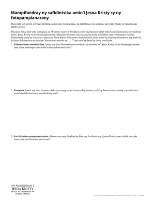 Rehefa vitan’ny mpianatra ny tao anatin’ny taratasy zaraina dia azonao atao ny manasa azy ireo hizara ny fomba nampaherezan’i Jesoa Kristy azy ireo rehefa nampifandray ny safidiny taminy sy tamin’ny fotopampianarany izy ireo.