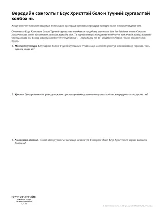 Есүс Христийн тухай гэрчлэлээ хуваалц. Та Өсвөр үеийнхний бат бөх байдлын төлөө товхимол дээрх “Есүс Христ танд туслах болно” хэсэг дэх мэдэгдлээр хичээлээ дуусгаж болно. Сонголтоо Түүнтэй, мөн Түүний сургаалтай холбоход суралцагчдыг урамшуулан дэмж.