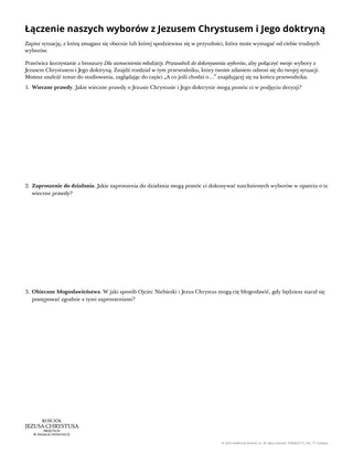 Kiedy uczniowie zapoznają się z ulotką, możesz poprosić ich, aby opowiedzieli o tym, w jaki sposób zostali wzmocnieni przez Jezusa Chrystusa, kiedy powiązali swoje wybory z Nim i Jego doktryną.