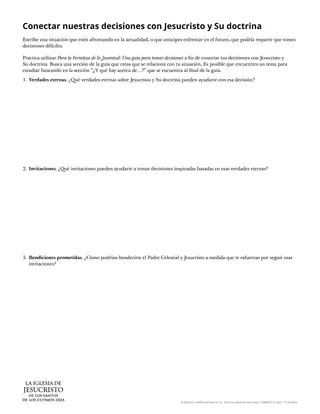 Asegúrese de que los alumnos entiendan que Para la Fortaleza de la Juventud: Una guía para tomar decisiones es una herramienta que puede ayudarnos a conectar nuestras decisiones con Jesucristo.
