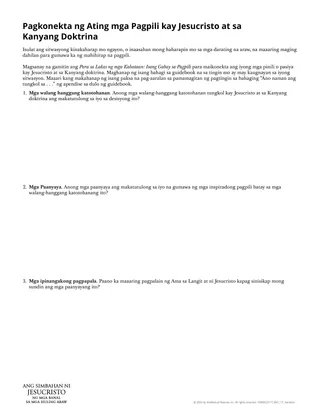 Pagkatapos makumpleto ng mga estudyante ang handout, maaari mo silang anyayahang ibahagi kung paano sila pinalakas ni Jesucristo nang iugnay nila ang kanilang mga pagpili sa Kanya at sa Kanyang doktrina.