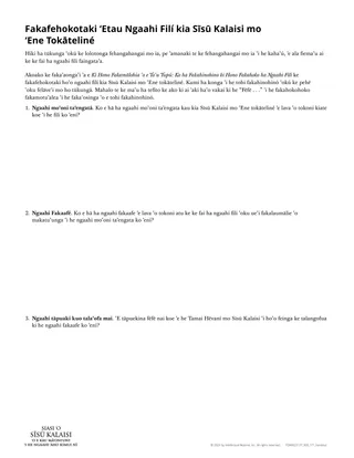 Teuteu ʻa e tokotaha akó: Fakaafeʻi e kau akó ke toe vakaiʻi ha konga ʻe taha ʻo e meʻa ne nau fili ʻi he Ki Hono Fakamālohia ʻo e Toʻu Tupú. ʻE lava ke fakakaukau ʻa e kau akó ki he founga ʻe lava ke tokoniʻi ai kinautolu ʻe he ngaahi akonaki ʻa Sīsū Kalaisi ʻi he konga ko iá ke nau fai ha ngaahi fili ʻoku ueʻi fakalaumālié.