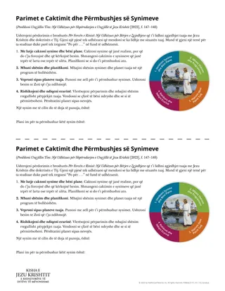 Jepini çdo nxënësi fletushkën “Parimet e Vendosjes dhe Përmbushjes së Synimeve”. Nxënësit mund t’i qasen këtij informacioni edhe duke shkuar te faqja 151 te Predikoni Ungjillin Tim: Një Udhëzues për Shpërndarjen e Ungjillit të Jezu Krishtit (2023).