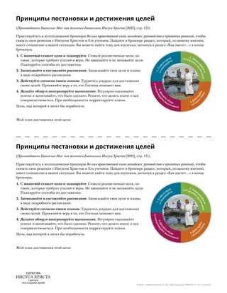 Следующее задание – один из способов того, как студенты могут составить план привлечения Господа к достижению своих целей. Они могут записать свои цели и план в рабочих тетрадях или в раздаточном материале.