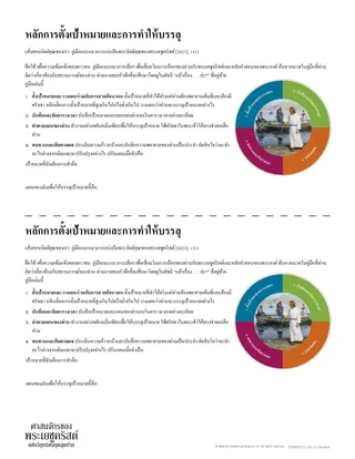 จากนั้นเลือกหนึ่งในเป้าหมายเหล่านี้และใช้หลักการในเอกสารแจกสร้างสถานการณ์สมมติที่แต่ละคนสามารถทําแต่ละขั้นตอนได้อย่างสมจริง พิจารณาว่าท่านจะให้พระเจ้ามีส่วนในกระบวนการนี้อย่างไร