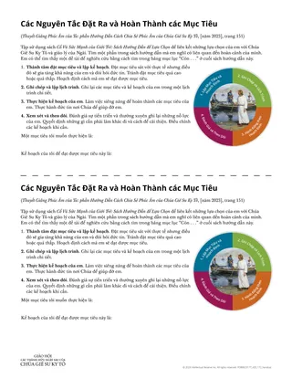 Cung cấp tài liệu phát tay “Nguyên Tắc để Đặt Ra và Hoàn Thành Các Mục Tiêu” cho mỗi học viên. Học viên cũng có thể truy cập thông tin này bằng cách tham khảo trang 169 trong Thuyết Giảng Phúc Âm của Ta: Sách Hướng Dẫn Cách Chia Sẻ Phúc Âm của Chúa Giê Su Ky Tô (năm 2023).
