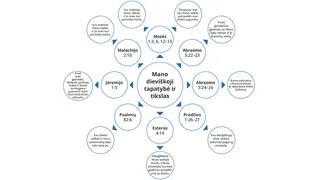 Savo studijavimo žurnale esančioje schemoje nubrėžkite rodykles iš kiekvienos perskaitytos Raštų ištraukos. Rodyklių gale nupieškite naujus apskritimus.