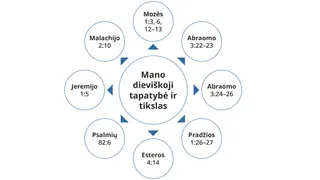 Studijuodami šios pamokos Raštų ištraukas, apmąstykite, kaip jos susijusios su jumis. Kai tai darysite, Šventoji Dvasia gali padėti dar kartą patvirtinti jūsų dieviškąją tapatybę ir tikslą arba jaustis užtikrinčiau dėl dieviškosios tapatybės ir tikslo.