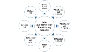 Begynnelsen av dette Seminar-kurset inneholder flere lærdommer fra leksjoner om Det gamle testamente som handler om vår guddommelige identitet og hensikt. For eksempel leksjon 3: “Abraham 3”, leksjon 4: “Moses 1:1–11”, leksjon 5: “Moses 1:12–26” og leksjon 8: “1 Mosebok1:26–27”. Denne leksjonen vil gjennomgå sannhetene om guddommelig identitet fra andre leksjoner om Det gamle testamente. Det kan være en repetisjon hvis elevene har hatt disse leksjonene, eller en forhåndsvisning av leksjoner de kommer til å studere senere i Seminar.